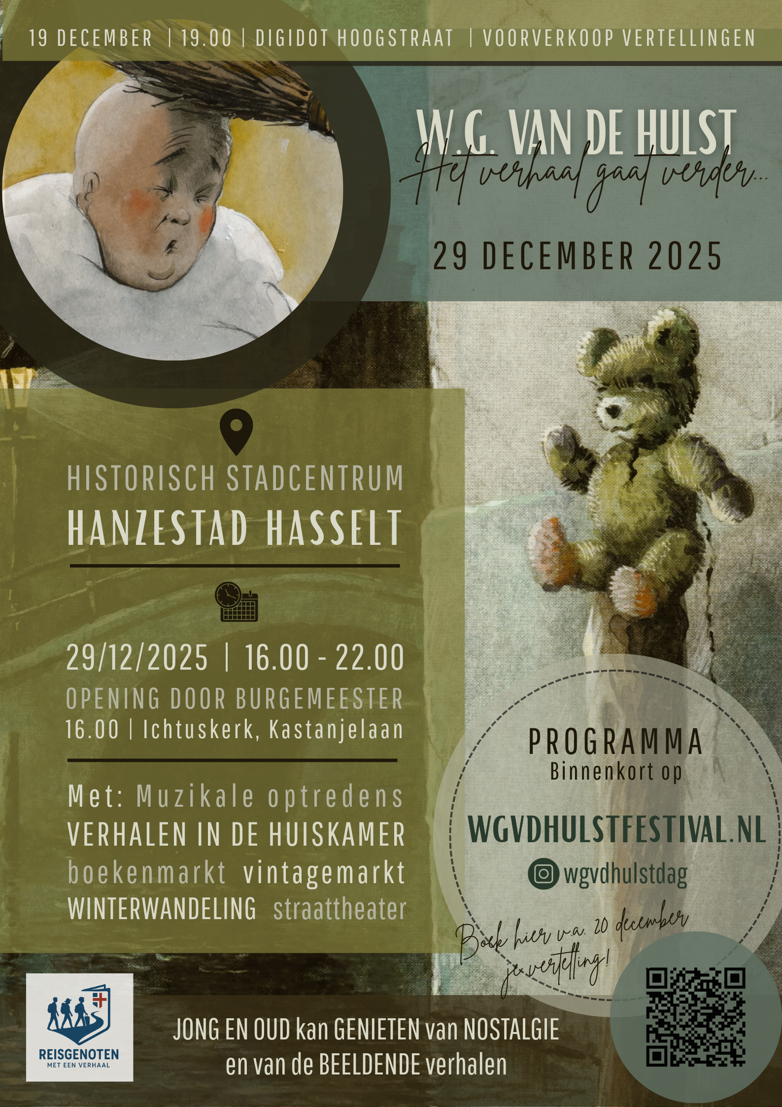 Onder de fonkelende lichtjes van de historische grachten verandert Hasselt op maandag 29 december opnieuw in een levend prentenboek. Tijdens de W.G. van de Hulst-dag komen jong en oud samen voor een avond vol nostalgie, verhalen en verwondering.